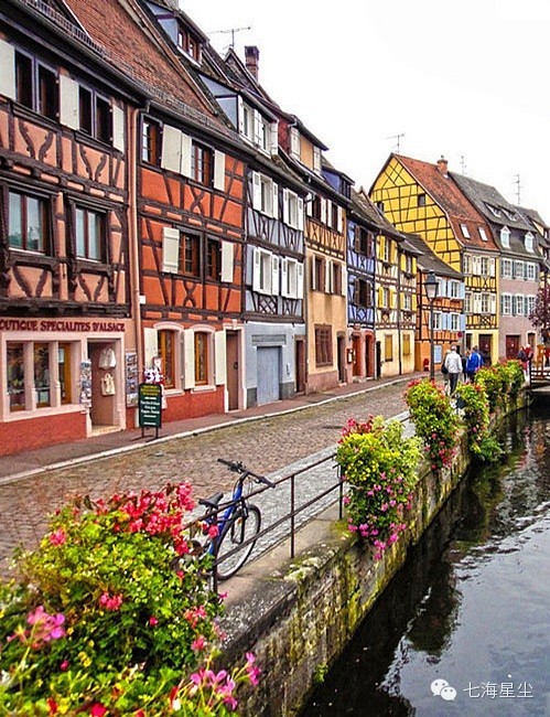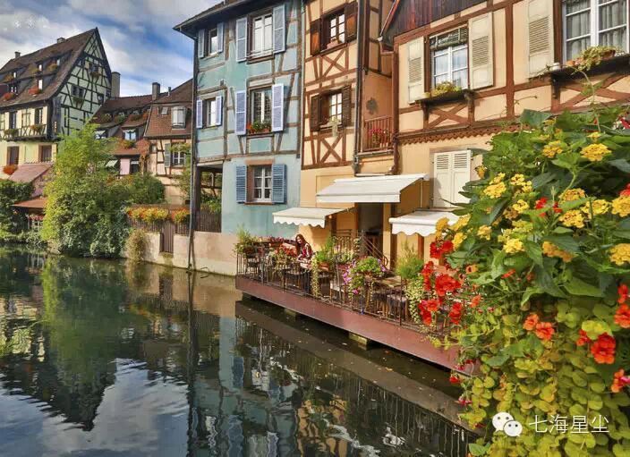 科尔马(Colmar)印象,只一眼便会永远的停留在记忆的最深处。童年拼搭过的如积木一般的木筋屋,有尖尖的屋顶,有彩虹的缤纷,有鲜花的簇拥,有天马行空的橱窗,小时候的童话故事中的世界在科尔马逐渐被还原。阵雨过后的艳阳下,没有熙攘的人群,没有嘈杂的街巷,漫无目的的晃荡,中世纪的石板路上安静得似乎只听得到自己的脚步声。一个人的童话时光在科尔马如此让人着迷。阳光穿透屋顶的低云,洒向运河温润的水面,偶尔驶过的花船将色彩晕开,一副绝美的画面最终将科尔马的定格。