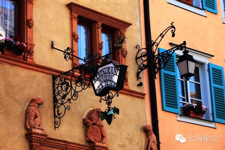 人头屋(Maison desTêtes)19号有一栋建于1609年初文艺复兴时期的建筑物,即名称极为特殊的“人头屋,这是老城区最著名的两栋房子之一。该建筑以其正面的105颗人面头像雕刻而闻名。头像表情各异,生动有趣。现一楼已成为餐厅,楼上则为四星级的饭店。另一座普菲斯泰屋(Maison Pfister)建于1537年,包括许多历史悠久的特色建筑及精致的店面,贩卖当地的民俗艺品及美食,值得徒步细细品味。其文艺复兴时代风格的前院,哥特式窗户和凸肚窗甚为著名。