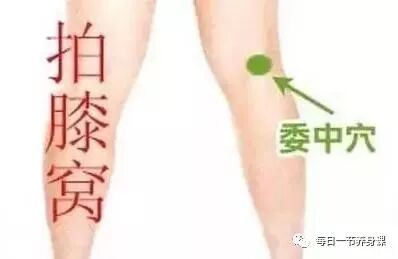 在膝窝的中点有一个重要穴位叫委中穴,走膀胱经。膀胱经是人体最大的排毒祛湿的通道,而委中穴是这条通道上的“排污口”。