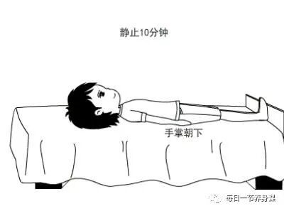 双臂伸直,手掌朝下,静止10分钟,便会感到困倦。若还无睡意,五分钟后再做一次,一般做两次都能入睡。