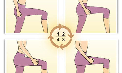 每天在大腿外侧的这四个点用力敲打,每敲打四下算一次,每天敲左右大腿各五十次,左右各两百下。