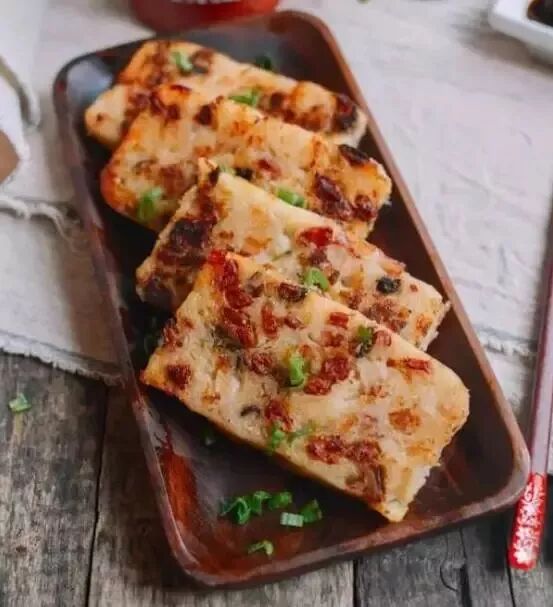 外酥里嫩的萝卜糕无论是搭配辣椒酱、酱油,还是耗油,味道都棒棒的。