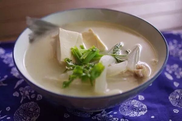白萝卜和鲫鱼煮汤妙在「二白」食材上,白萝卜浸在奶白色的鱼汤里,清淡爽口,食欲满满。