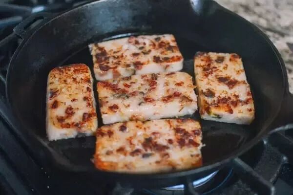 做好的萝卜糕可以不用全部煎完,剩余的可放入冰箱储存。