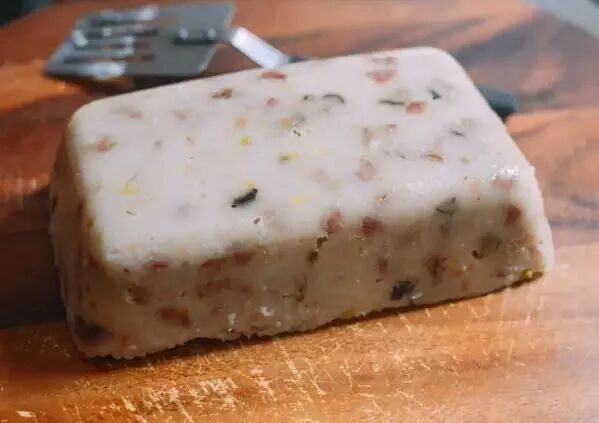 4. 装入平底深盘中,入锅中高火蒸50分钟,蒸好放凉脱模;