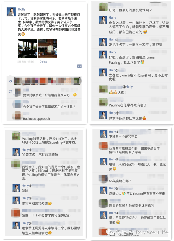 美国富人喜欢在深山老林,上海话里的“妖腻”角落建豪宅,那种地方有时候连Garmin,google map都跑丢了,更不用说人脑GPS了! 跑错路走迷路是经常,搞不好还一个不小心跑到邻居家去了。最好玩的那次也是在Tiburon,Holly闯进了一位老爷爷的院子,正懊恼着准备掉头,老爷爷跑出来了,神速啊。逛了一大圈,好不容易见着个活人,我也来劲了,大大的抱怨了一番,谁知老爷爷邀请我进屋喝饮料休息一下。馋嘴Holly一听见有好喝的,什么都不管了,立马跳下车跟着进去了,汗。接下来么,老爷爷把生平介绍blablabal说了个遍,说他最好的朋友得了两个炸药奖,这位好朋友呢还特别喜欢老爷爷的老婆,嗯,果然好八卦。。。6个孩子都不在身边,一个人住在6个房间的大房子里,又是在Tiburon安静的山上,这样的寂寞可以理解。很喜欢老爷爷叫我kiddo,真的感觉自己还是个孩子,这算是个美妙的邂逅,笑。