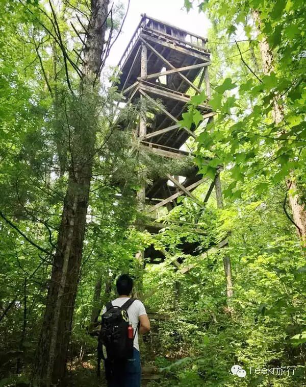 1、景区内有一个木质观景台,看上去年久失修,但却很有来头,这座被称为“少奇塔”的台子据说是刘少奇和夫人到带岭视察时登临的塔,可登上去,但会时不时咯吱咯吱作响!