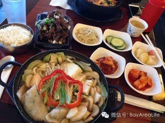 这里有各种不同种好吃的泡菜,豆腐汤好喝,烤辣肉更加棒。