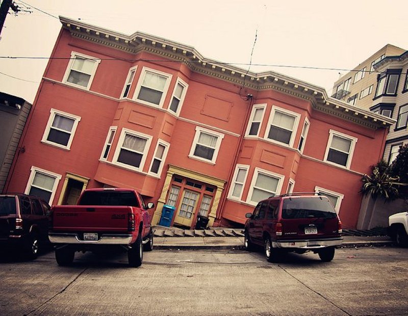 在Leavenworth和Hyde之间的Filbert(31.5%坡度);在Church 和Vicksburg之间的22nd Street(31.5%坡度);在Union和Filbert之间的Jones(29%坡度);在Alpine和Buena Vista之间的Duboce Avenue(27.9%坡度)。百分比表示每100英尺,坡高上升3l.5英尺,29英尺…以此类推。