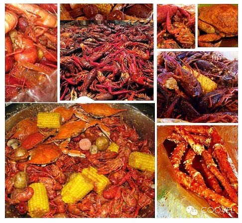 这里的龙虾、长脚蟹、贝类、小龙虾等等应有尽有,点餐的时候一磅一磅的点,在这里就餐时不给你任何餐具,只给你一个围兜。所以你就不要顾忌什么形象了,所有的食品就装在袋子里放在桌上,食客们直接上手,吃的也是不亦乐乎,开动消灭桌子上的海鲜吧!